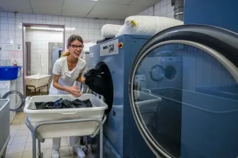 Regelmäßig ins Haus kommen eine Frisörin und Fußpflegerinnen. Für die Wäsche haben wir eine hauseigene Wäscherei und die Räumlichkeiten werden von angestellten Reinigungskräften gepflegt.